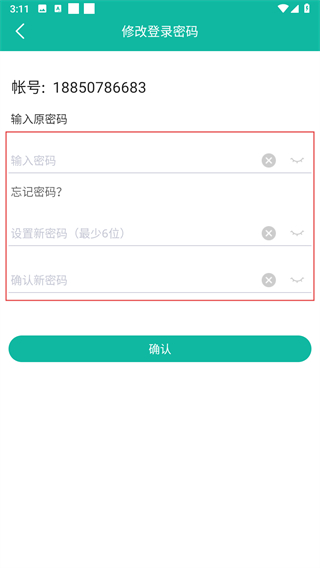 4、輸入原密碼、設(shè)置新密碼并確認(rèn)新密碼,完成后點(diǎn)擊確認(rèn)。