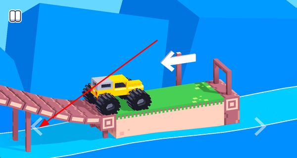 2、操控車輛前進,關(guān)卡中控制黃色車輛向前移動,通過橋梁等地形,完成關(guān)卡的移動任務(wù),推進游戲。