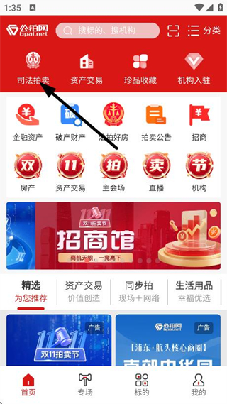 1、在首頁,隨后立即點擊司法拍賣,進入司法拍賣頁面。