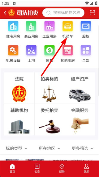 2、在司法拍賣頁面,點擊機動車,進入機動車拍賣列表頁。