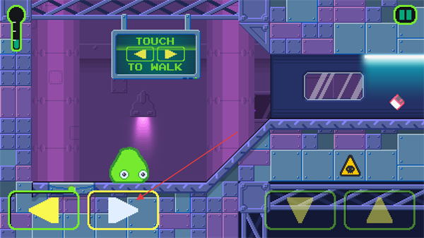 1、點(diǎn)擊右側(cè)前進(jìn)按鈕,控制粘液角色移動(dòng),按照TOUCHTOWALK提示探索場(chǎng)景。