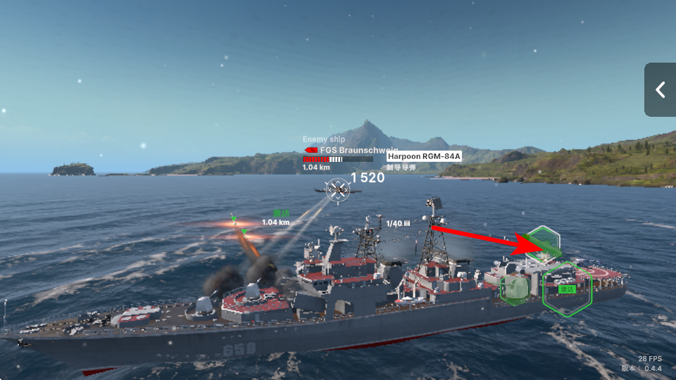 2、發(fā)射如魚叉導(dǎo)彈之類的武器時,需關(guān)注武器的射程和傷害,有效摧毀敵方艦艇注意點(diǎn),根據(jù)敵我距離選擇武器。