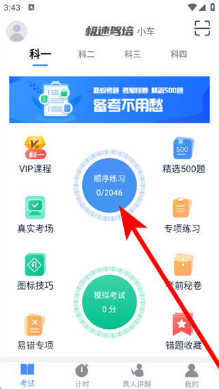 1、打開極速駕培,點擊順序練習,開始刷題。