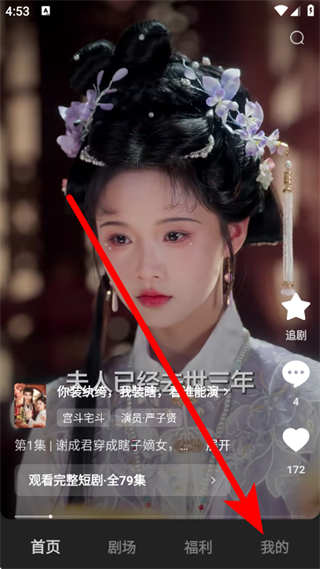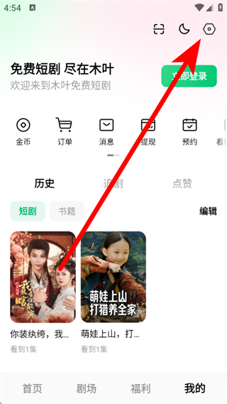 1、打開(kāi)木葉短劇,點(diǎn)擊底部我的,進(jìn)入個(gè)人中心頁(yè)面。