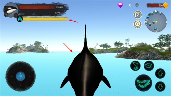 通過捕獵、探索積累生存經(jīng)驗,解鎖更強大的生存技能與身體能力,提升游泳速度、咬合力等屬性,讓虎鯨在殘酷海洋中更具競爭力。