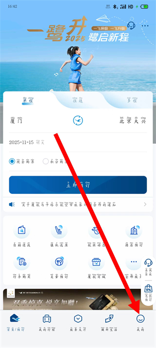 1、打開(kāi)廈門航空,點(diǎn)擊底部我的,進(jìn)入個(gè)人中心頁(yè)面。