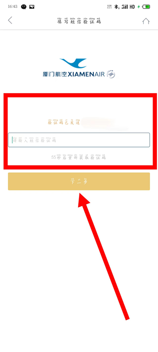 4、輸入收到的驗(yàn)證碼,點(diǎn)擊下一步,完成賬號(hào)注冊(cè)操作。