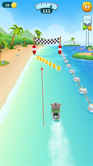 3、穿過金幣區(qū)域收集金幣,沖過終點(diǎn)線完成比賽。