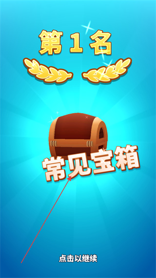 4、獲得第1名后,開啟常見寶箱,點(diǎn)擊繼續(xù)挑戰(zhàn)新關(guān)卡。