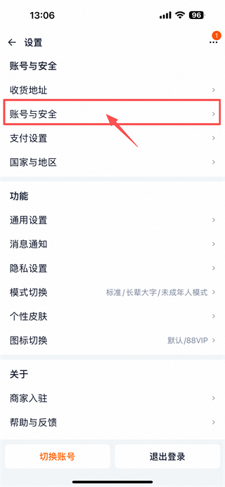 3、在設(shè)置界面,點擊賬號與安全選項,進(jìn)入賬號與安全頁面。
