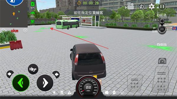 4、跟隨地圖指引左上角小地圖,在城市道路中行駛,注意交通規(guī)則,按時(shí)到達(dá)指定位置完成接客任務(wù)。