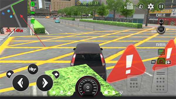2、進(jìn)入駕駛界面后,通過右側(cè)操作區(qū)域控制車輛前進(jìn)D擋、后退R擋,左側(cè)按鈕控制方向。