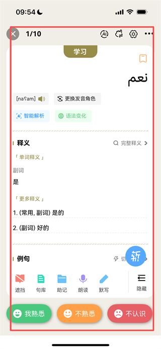 4、在單詞學(xué)習(xí)頁面,即可查看單詞的釋義等信息并進行學(xué)習(xí)。