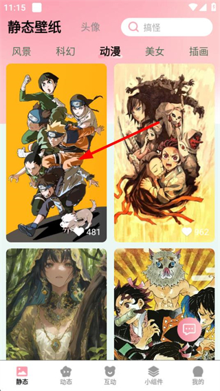 2、在動漫壁紙列表頁面,選擇目標壁紙,進入壁紙詳情頁面。