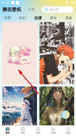 1、在靜態(tài)壁紙頁面,點擊動漫分類標簽,進入動漫類壁紙列表頁面。