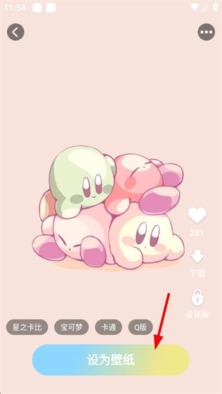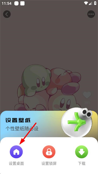 3、在壁紙詳情頁面,點擊設為壁紙按鈕,彈出設置選項窗口。