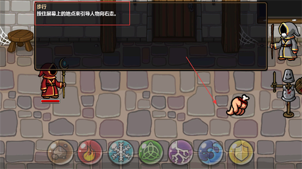2、按住屏幕上的任意地點(diǎn),可引導(dǎo)角色向該方向移動,實(shí)現(xiàn)場景內(nèi)的自由探索與位移。