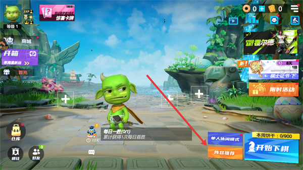 1、進(jìn)入游戲主界面后,點(diǎn)擊陣容推薦選項(xiàng),進(jìn)入陣容推薦界面。