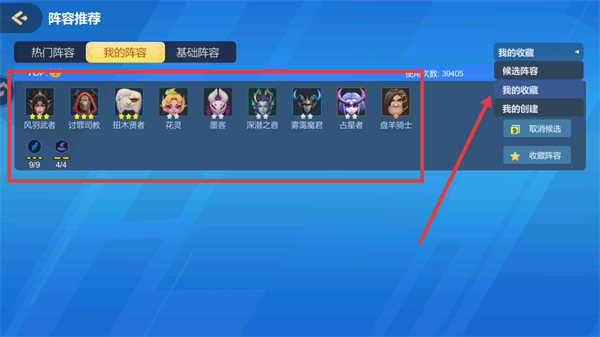 4、收藏后的陣容可在我的陣容中的我的收藏里查看,方便后續(xù)使用或參考。