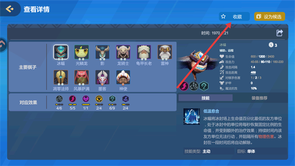 3、在陣容詳細(xì)信息界面,點(diǎn)擊收藏按鈕,即可將該陣容收藏。