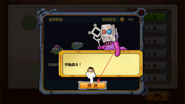1、點擊挑戰(zhàn)按鈕,進入戰(zhàn)斗界面,與敵方怪物展開對戰(zhàn)。