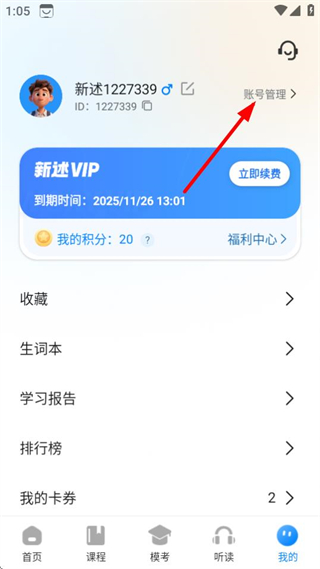 2、進(jìn)入個人中心頁面后,點(diǎn)擊賬號管理選項(xiàng),可進(jìn)入賬號管理設(shè)置頁面。
