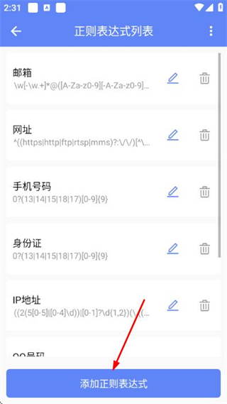 2、在正則表達(dá)式列表頁(yè)面點(diǎn)擊添加正則表達(dá)式,彈出正則表達(dá)式輸入窗口。