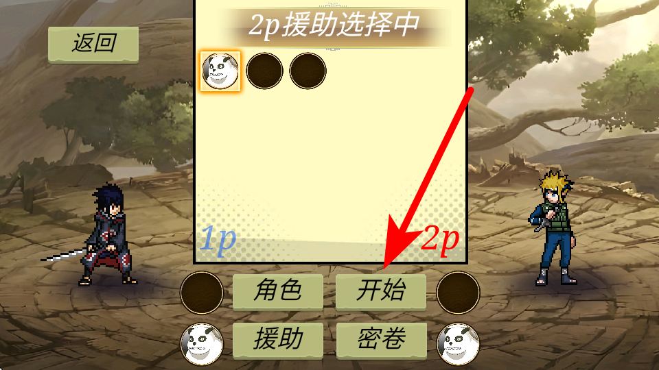 1、在援助選擇界面選定援助角色后,點擊開始按鈕進入忍者對戰(zhàn),這是開啟對決的關(guān)鍵操作,準確點擊后可進入實戰(zhàn)場景,解鎖援助召喚等核心對戰(zhàn)玩法。