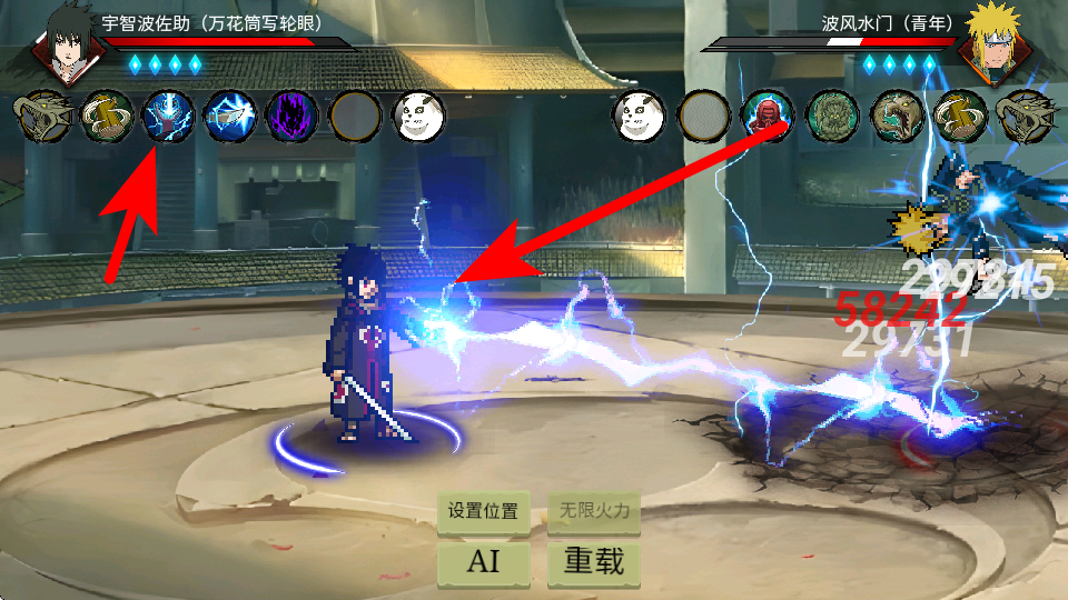 3、點擊技能欄中的對應忍術(shù)如宇智波佐助的雷系技能,釋放技能造成傷害,這是對戰(zhàn)輸出的核心操作,通過連貫釋放技能持續(xù)消耗對手血量,推進對戰(zhàn)節(jié)奏。
