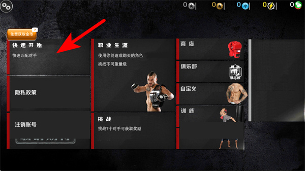 1、開(kāi)啟游玩,點(diǎn)擊快速開(kāi)始選項(xiàng),可直接進(jìn)入格斗對(duì)戰(zhàn),這是開(kāi)啟游戲核心玩法的關(guān)鍵操作。
