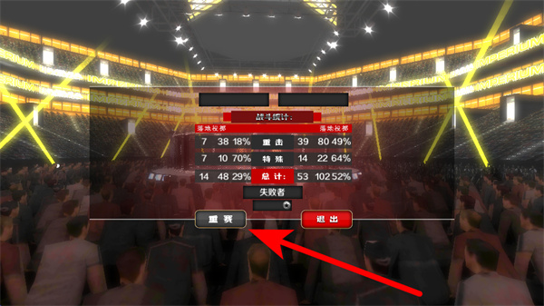 4、對(duì)戰(zhàn)結(jié)束后,點(diǎn)擊重賽按鈕可再次開(kāi)啟對(duì)戰(zhàn),這是反復(fù)練習(xí)格斗技巧、積累對(duì)戰(zhàn)經(jīng)驗(yàn)的關(guān)鍵步驟。