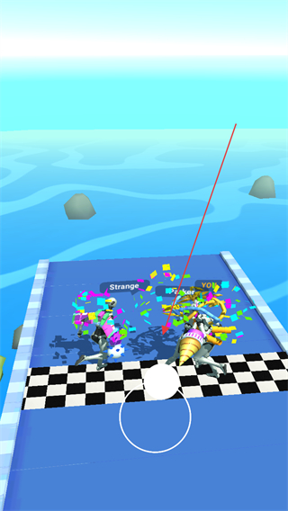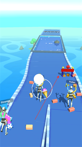 4、抵達(dá)終點(diǎn)區(qū)域,擊敗對(duì)手觸發(fā)特效,完成關(guān)卡獲取勝利。