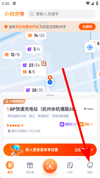 1、打開小桔充電,在彈出的協(xié)議與規(guī)則彈窗中,點(diǎn)擊同意。