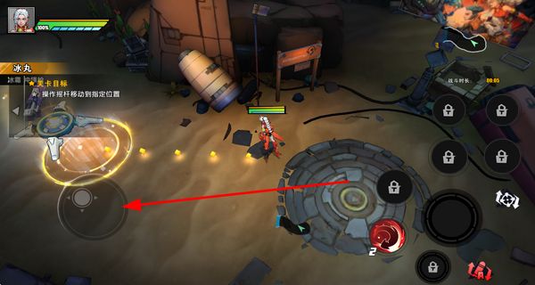 2、進(jìn)入關(guān)卡后操作搖桿控制角色移動,前往指定位置拾取武器,完成關(guān)卡的移動目標(biāo),推進(jìn)關(guān)卡流程。