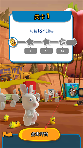1、查看關卡1目標為收集18個罐頭,點擊點擊開始進入游戲。