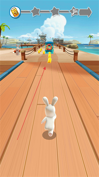 2、操控兔子沿賽道前進,收集沿途的罐頭,積累數(shù)量。