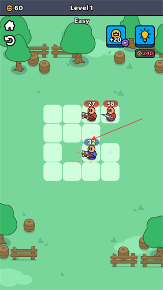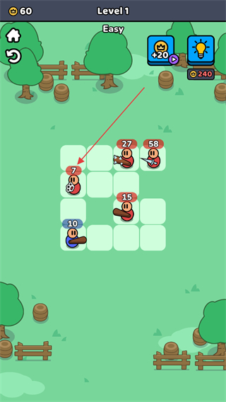 2、觀察場(chǎng)上的紅方小兵頭頂?shù)臄?shù)字,選擇比自身小的數(shù)字的小兵進(jìn)行逐一擊破。