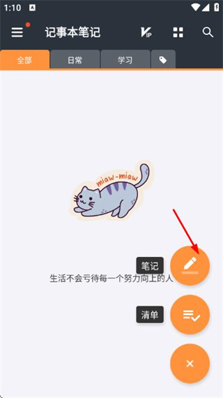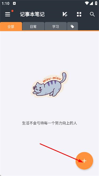 1、在記事本筆記首頁點(diǎn)擊右下角的加號按鈕,彈出內(nèi)容創(chuàng)建的選項(xiàng)菜單。