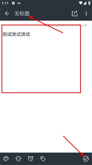 3、在筆記編輯頁面輸入內(nèi)容后,點(diǎn)擊底部的對勾按鈕,完成這條筆記的保存操作。