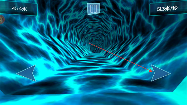 1、通過左右箭頭按鍵控制角色移動,在隧道中躲避障礙,積累前進距離。