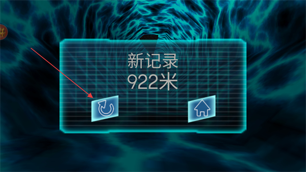 4、結(jié)算時查看新記錄如922米,點擊重玩按鈕再次挑戰(zhàn)。