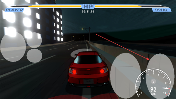 3、提升車(chē)速如到92mph,逼近對(duì)手車(chē)并發(fā)起碰撞,消耗其HP。