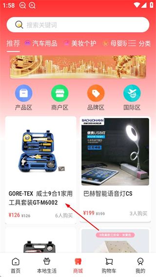 1、在萊存的首頁,點(diǎn)擊底部的商城選項(xiàng),進(jìn)入商城頁面。