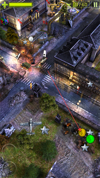 3、繼續(xù)打擊敵方目標(biāo),收集場景中的星星和道具,提升分數(shù)。
