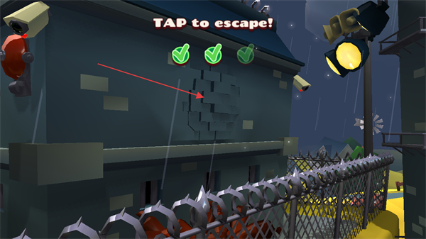 1、進(jìn)入游戲開(kāi)局我們需要幫助培根小豬出逃,點(diǎn)擊三次墻壁破開(kāi)監(jiān)獄墻面。