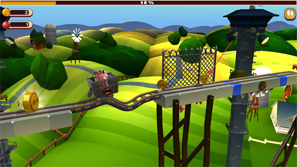 4、帶有藍(lán)色顏色的設(shè)施是可以進(jìn)行點(diǎn)擊控制的,幫助小豬前進(jìn)的道路上沒(méi)有阻礙。