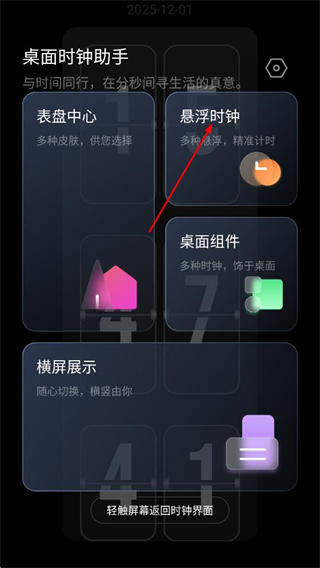 1、在桌面時鐘助手首頁,點擊懸浮時鐘選項,進(jìn)入功能頁面。