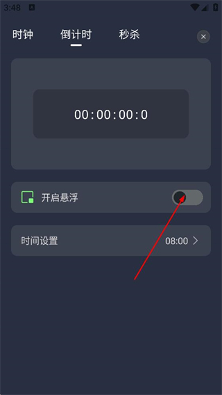 3、在倒計時界面,點擊開啟懸浮對應(yīng)的開關(guān)按鈕,啟用懸浮倒計時功能。