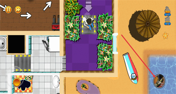 支持調(diào)節(jié)視角高低,方便觀察整個屋子布局與人員位置,需提前規(guī)劃潛入路線,有效避開發(fā)現(xiàn),提升玩家闖關的成功率。