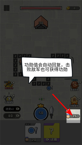 2、了解功勛值的獲取方式,既可以等待自動回復(fù),也能通過擊敗敵軍獲得,規(guī)劃功勛值的使用節(jié)奏,保證供給。
